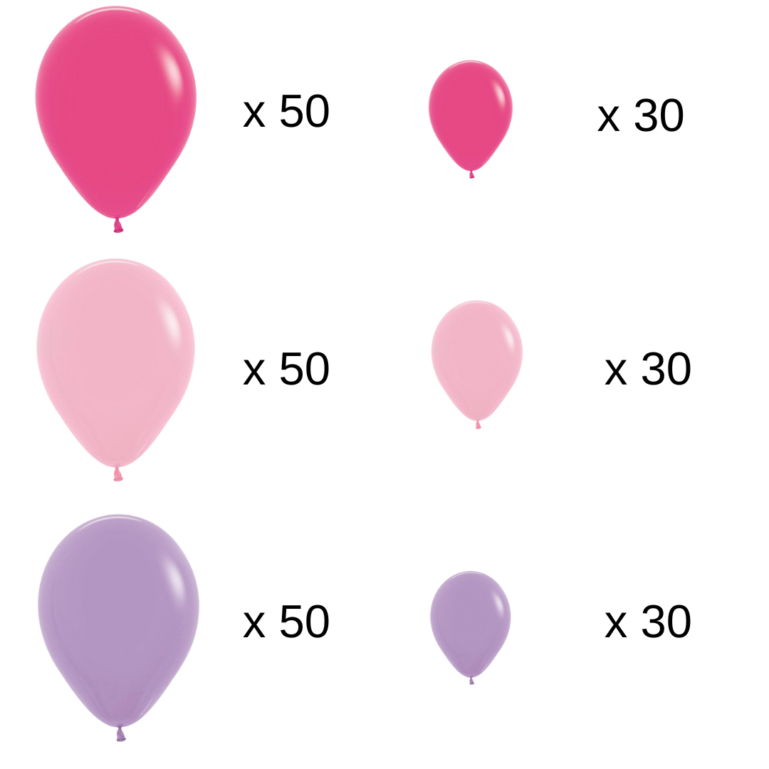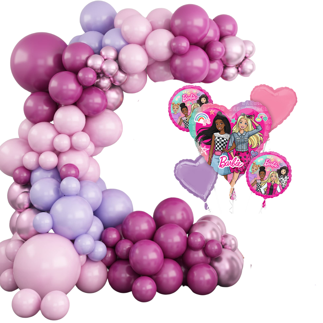 - 240 latex balloons in Barbie-themed colors (Pink, Fuschia, Lilac)