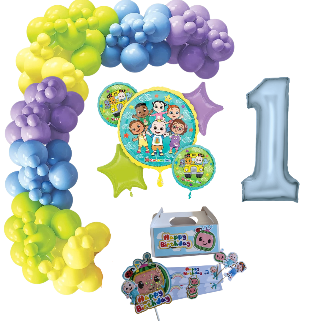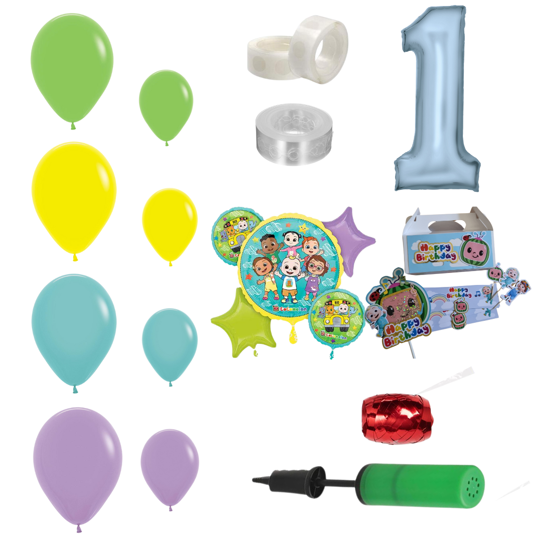 Cocomelon Themed Balloon Garland Kit Number 1 with Party Decor White