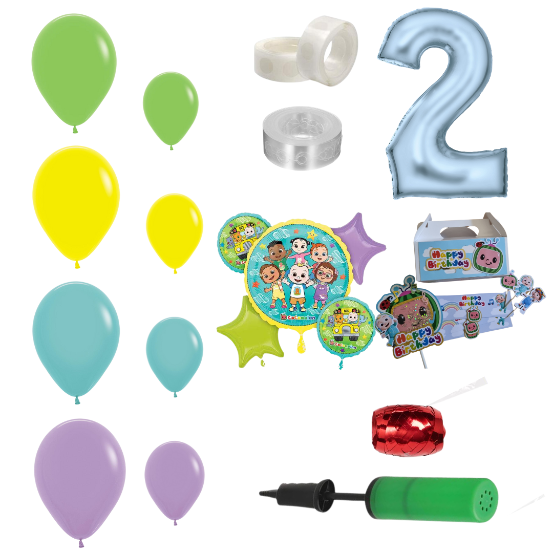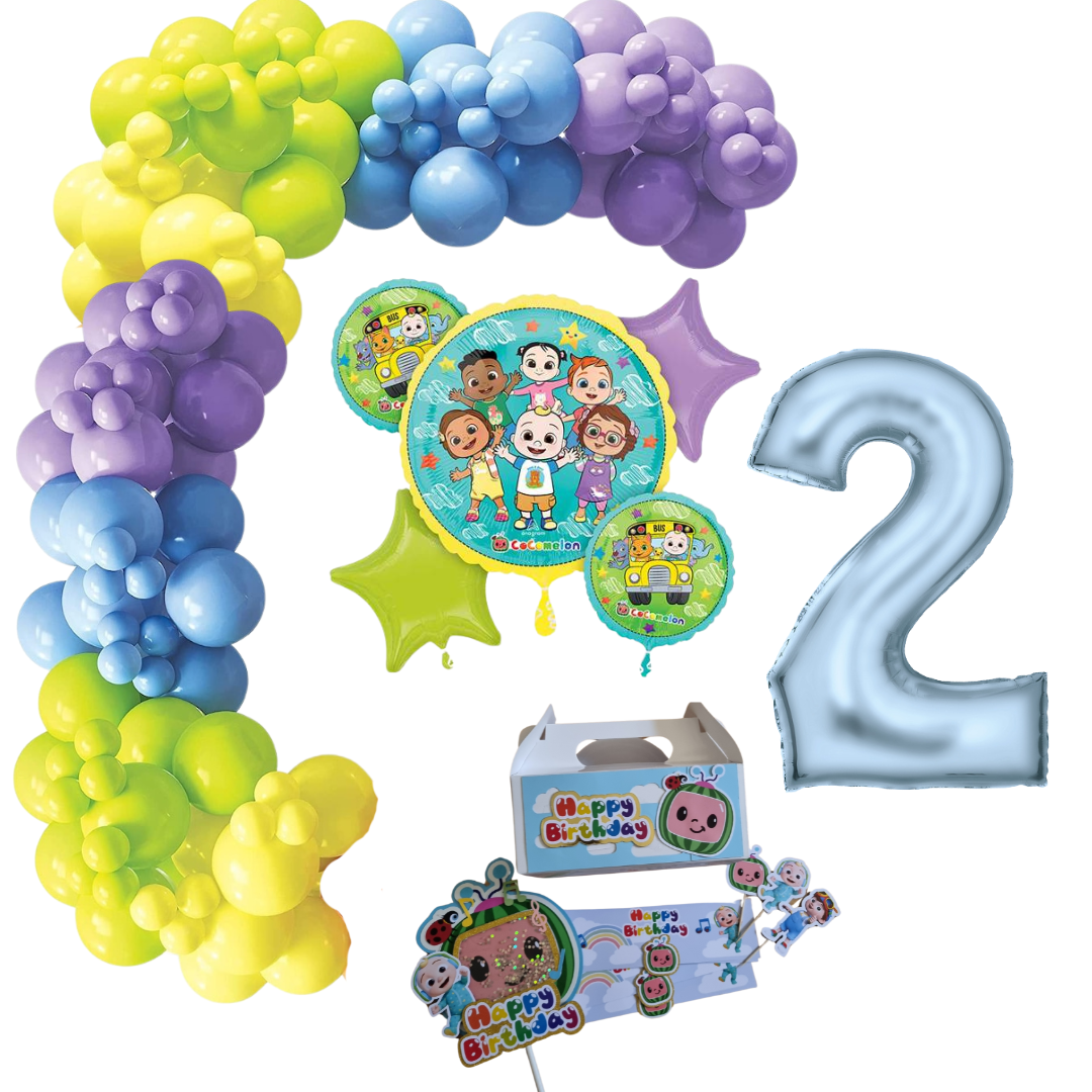 Cocomelon Themed Balloon Garland Kit Number 2 with Party Decor White