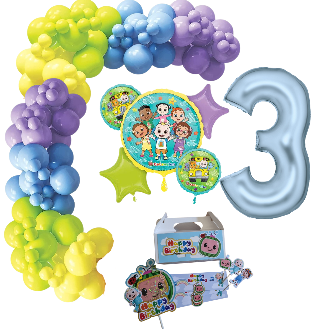 Cocomelon Themed Balloon Garland Kit Number 3 with Party Decor White