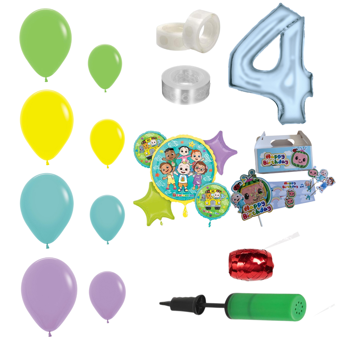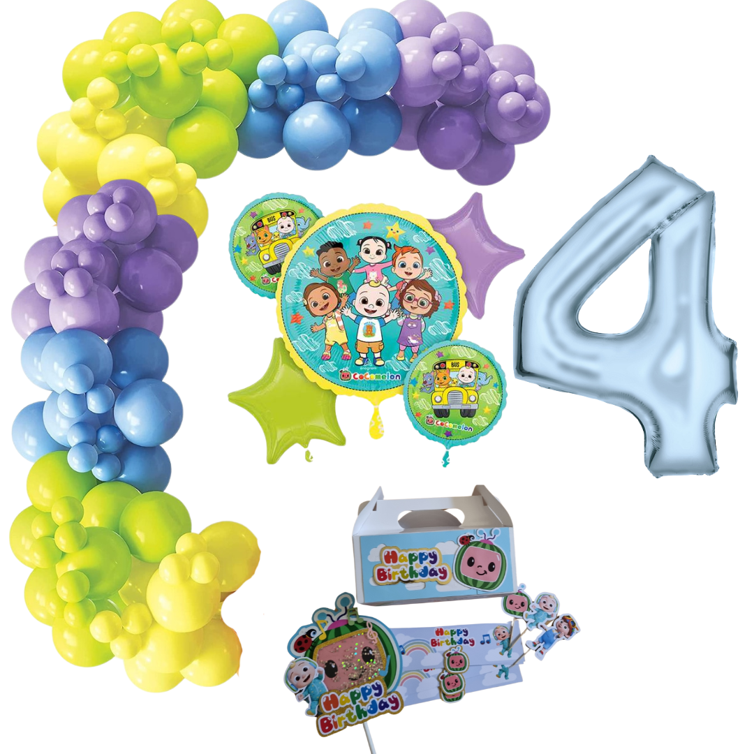 Cocomelon Themed Balloon Garland Kit Number 4 with Party Decor White