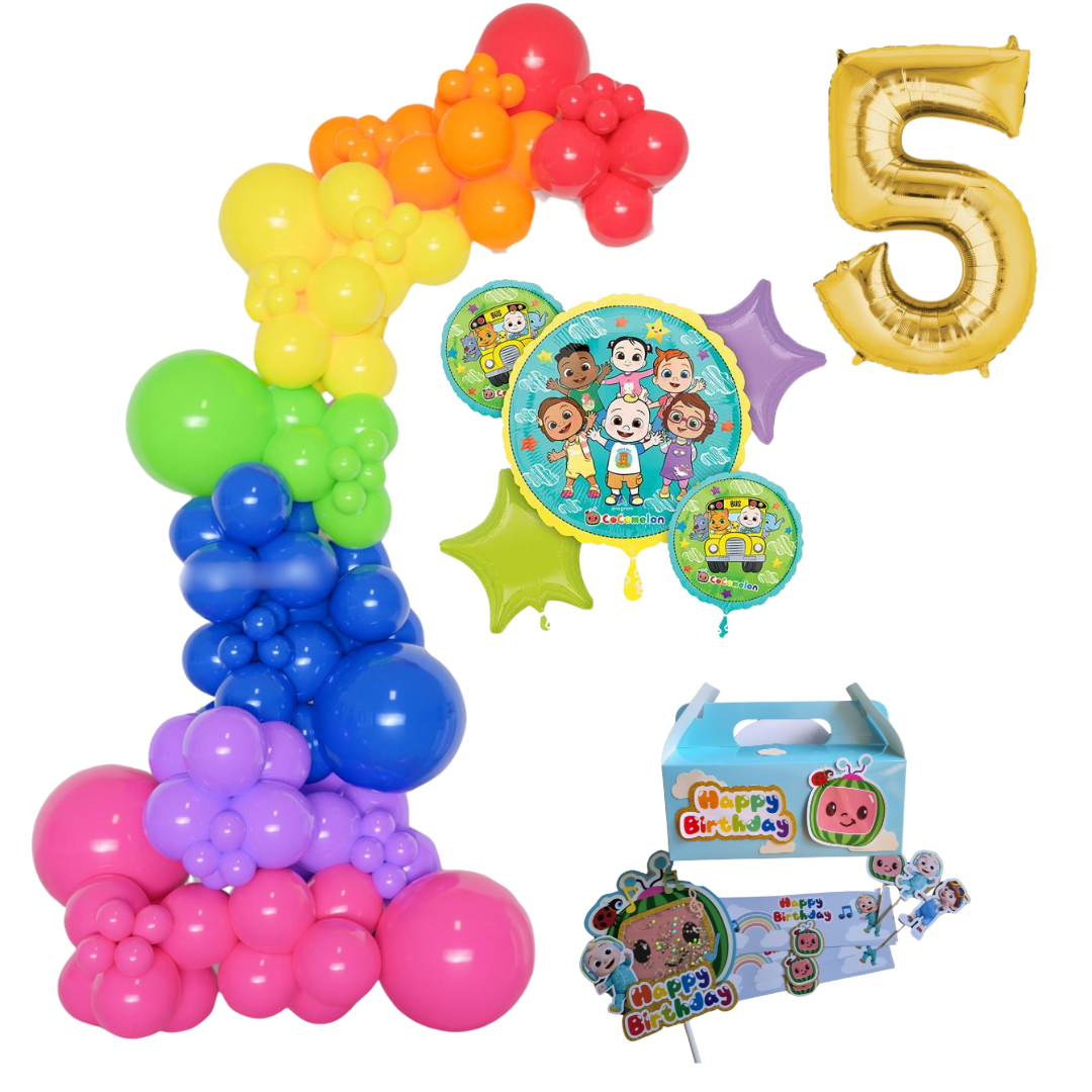Cocomelon Themed RainbowBalloon Garland Kit Number 5 with Party Decor Blue