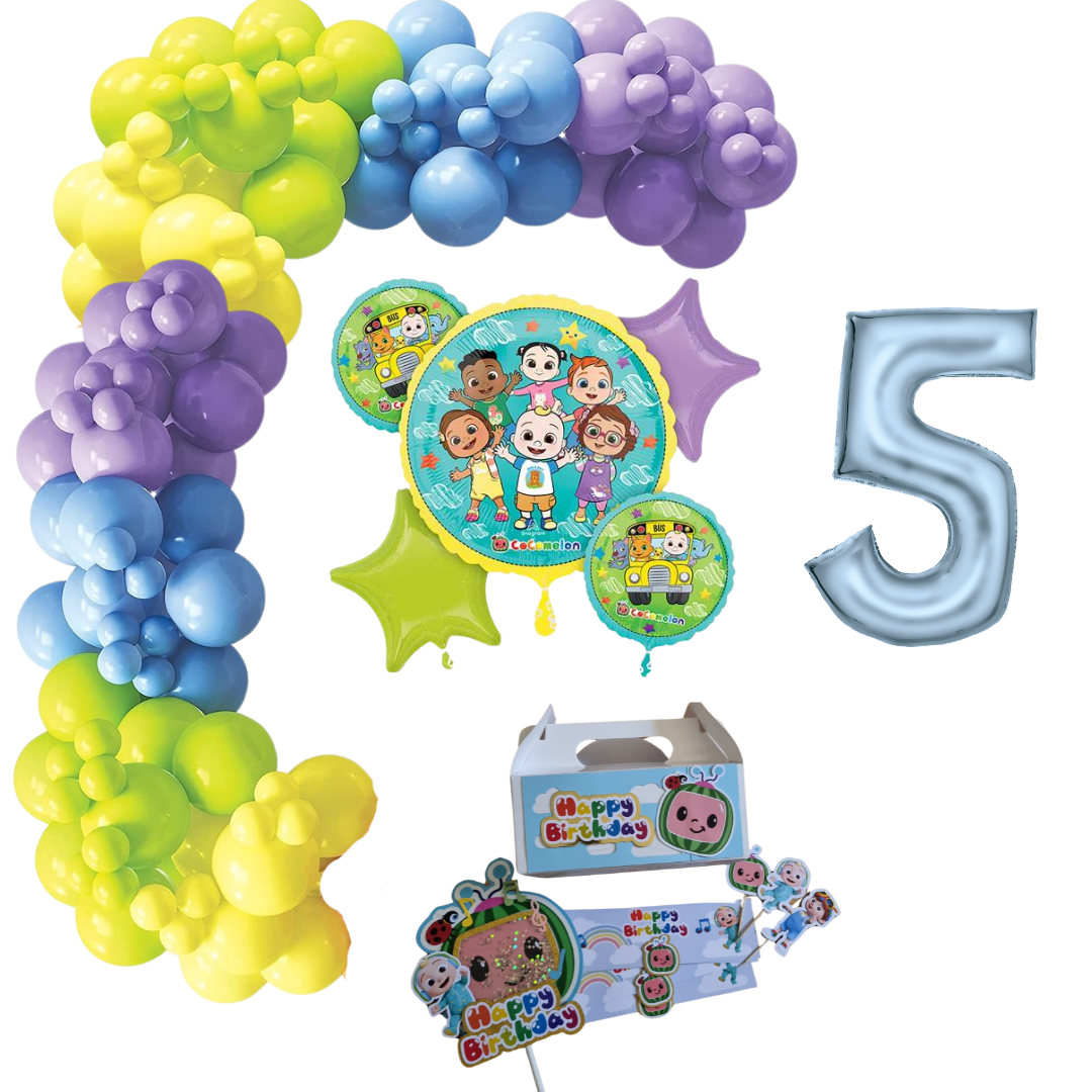 Cocomelon Themed Balloon Garland Kit Number 5 with Party Decor White