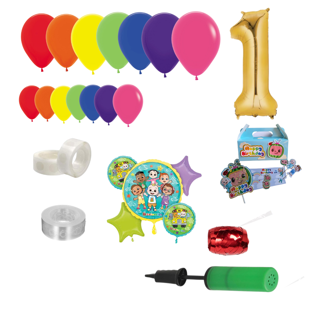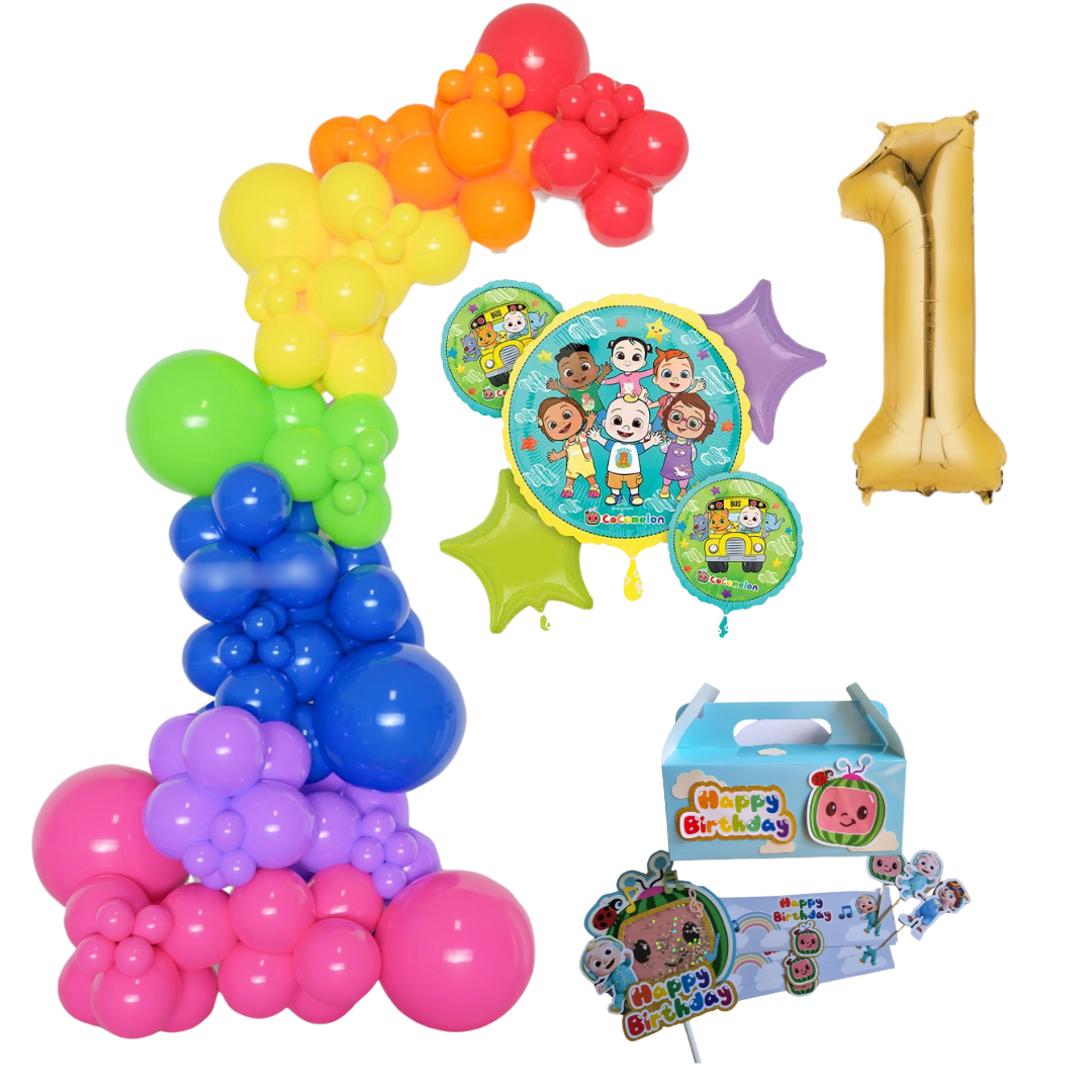 Cocomelon Themed Rainbow Balloon Garland Kit Number 1 with Party Decor Blue