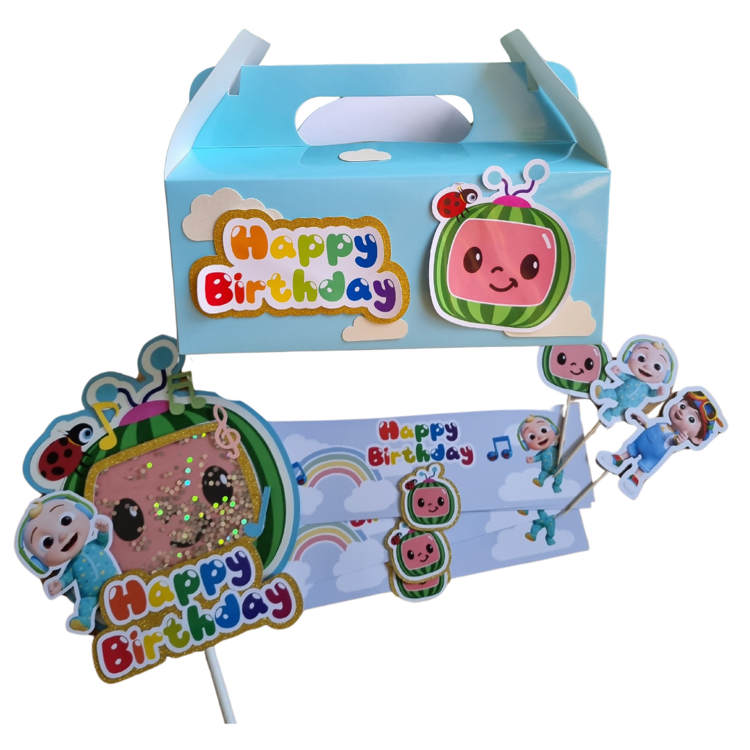 - 5 Piece cocomelon foil balloon bouquet (featuring cocomelon supershape and coordinating star shapes)