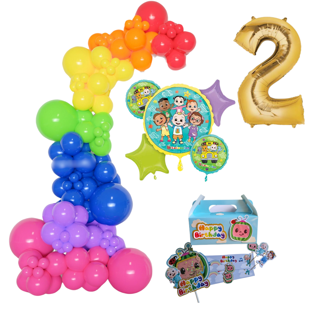 Cocomelon Themed Rainbow Balloon Garland Kit Number 2 with Party Decor Blue