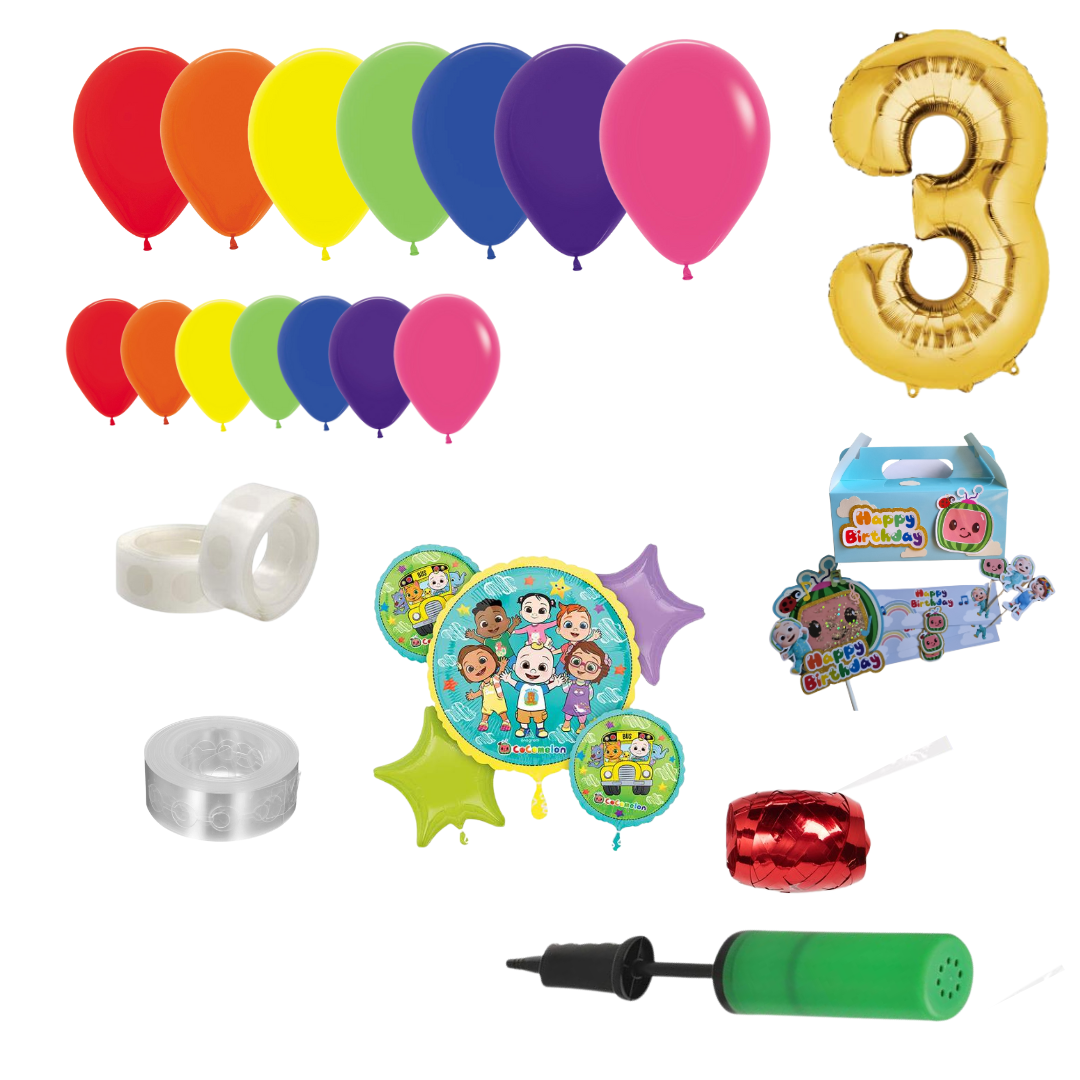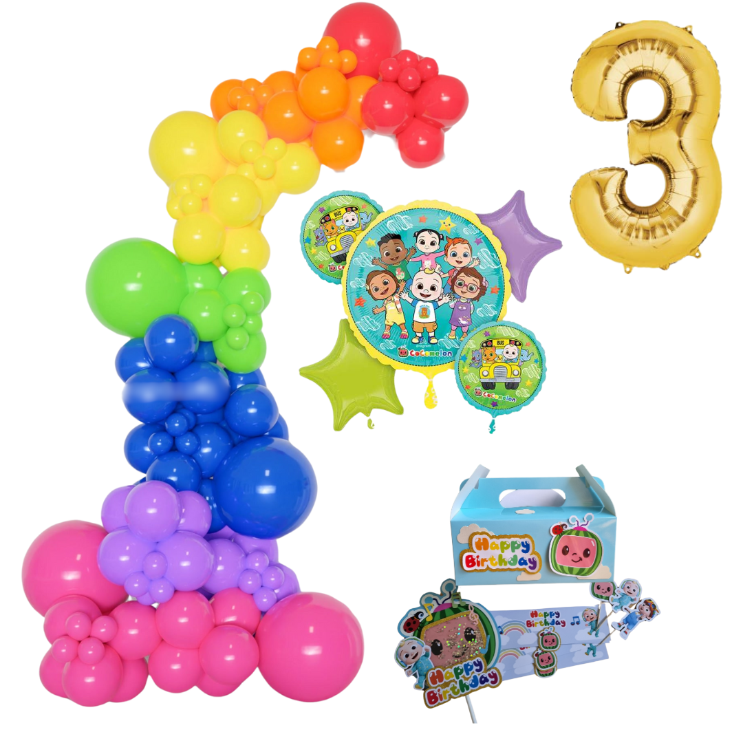 Cocomelon Themed Rainbow Balloon Garland Kit Number 3 with Party Decor Blue