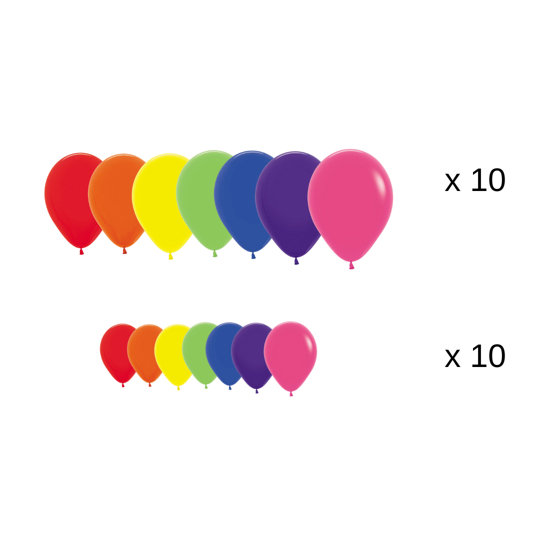 - 240 latex balloons in cocomelon-themed colors (rainbow)