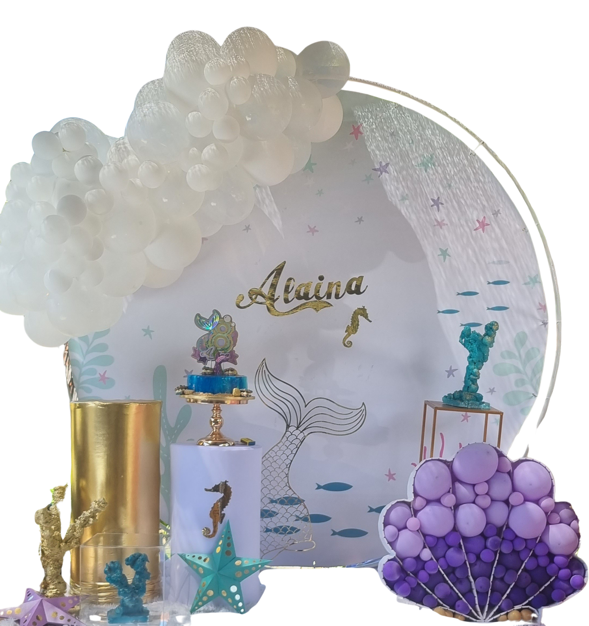 Make a splash with our magical Under the Sea / One-der the Sea / Mermaid Party Decor, featuring a beautifully crafted Round Backdrop and Organic Balloon Garland. Perfect for birthdays, baby showers, and ocean-themed celebrations. Available across JHB.