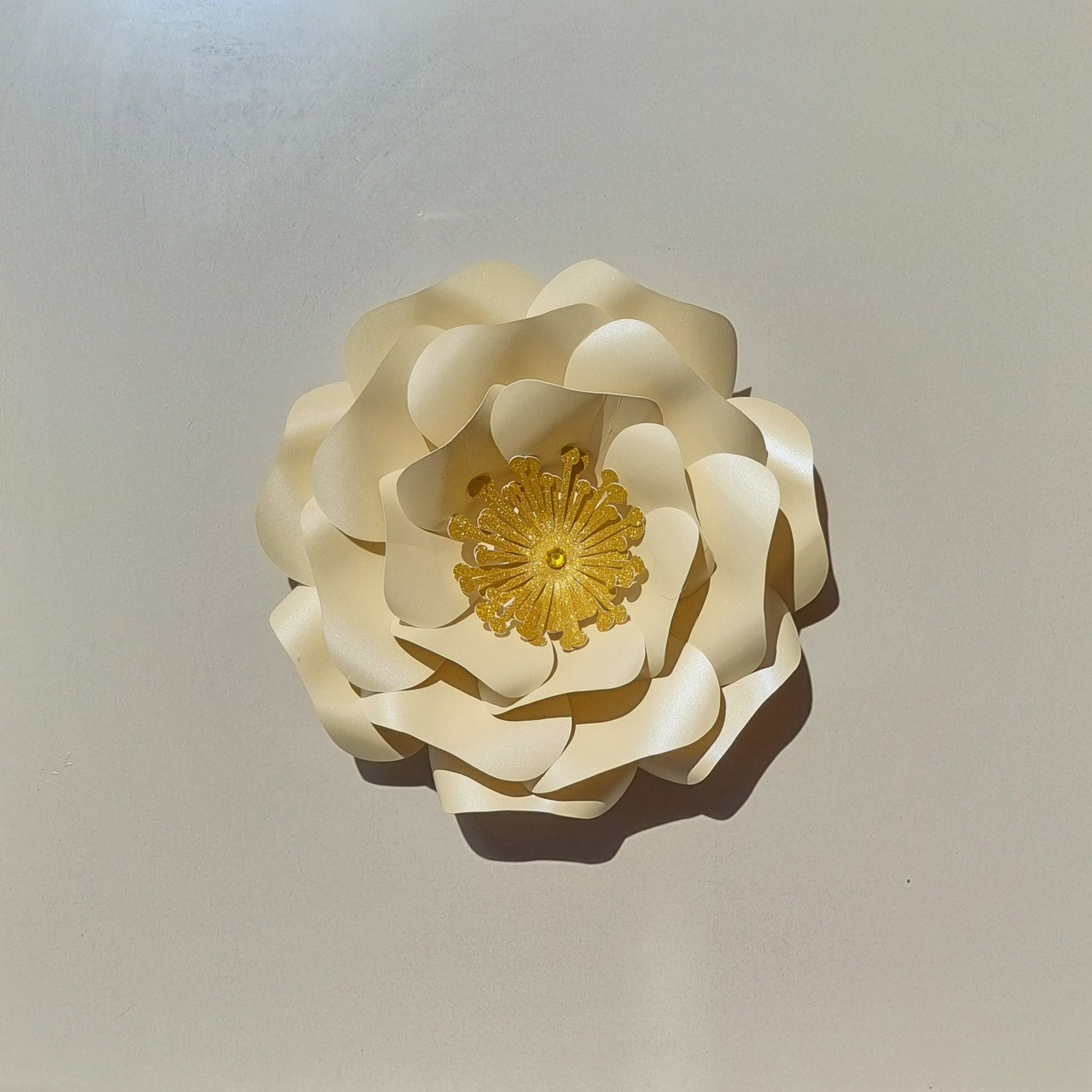 Flower is not assembled. Paper flower can be attached to the wall with thick white double-sided tape or a hook/nails