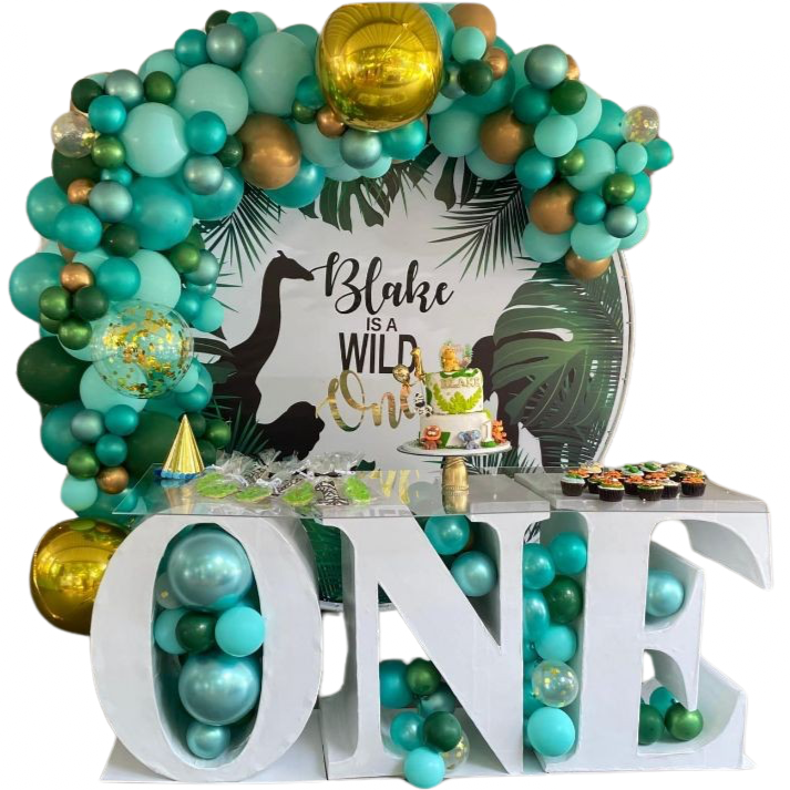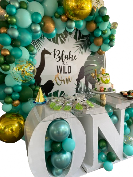 Create the ultimate Wild One Party experience with our beautifully designed Round Backdrop, Organic Balloon Garland, and ONE Table setup. Ideal for safari-themed birthdays, jungle parties, baby showers, and adventure-inspired events. Available for delivery and setup across JHB