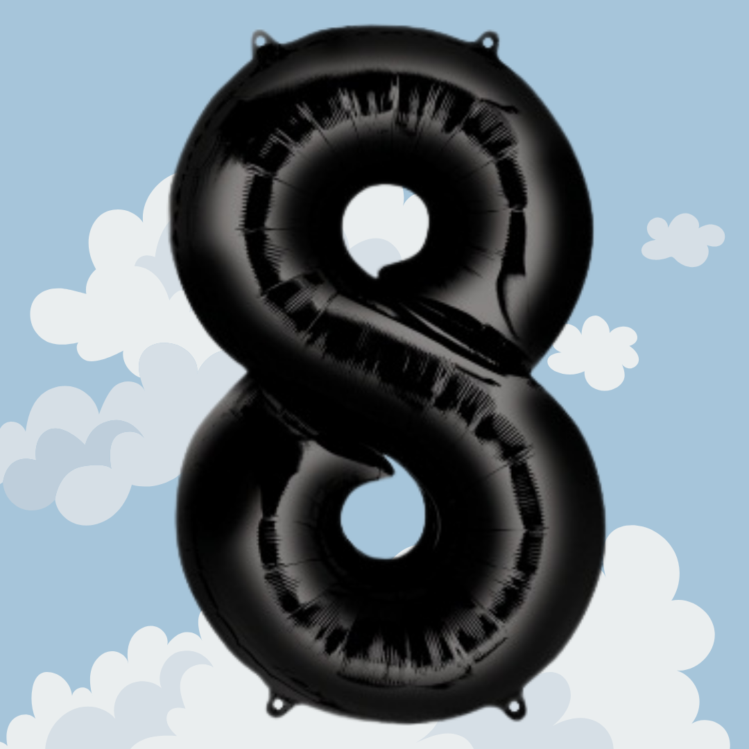 π Large black foil balloon shaped as the number 8