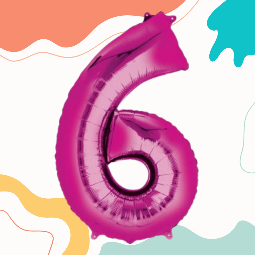 FOIL BALLOON LARGE CERISE PINK SIX 6