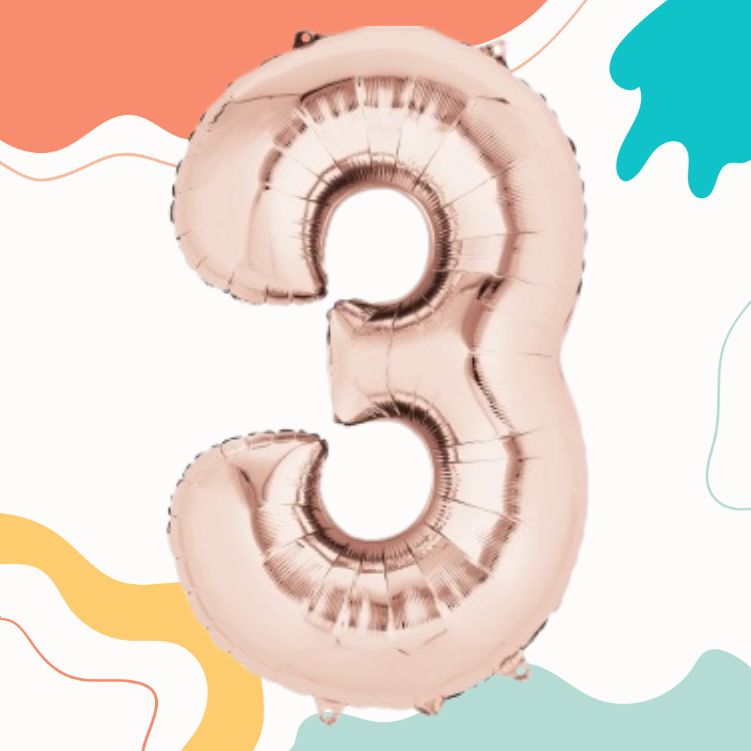 FOIL BALLOON LARGE ROSE GOLD THREE 3