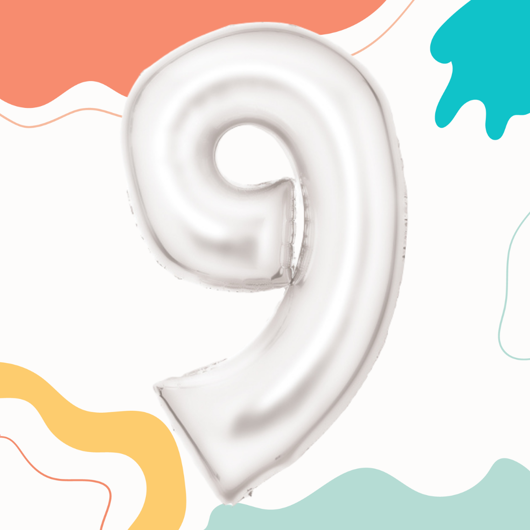 FOIL BALLOON LARGE SILK WHITE NINE 9