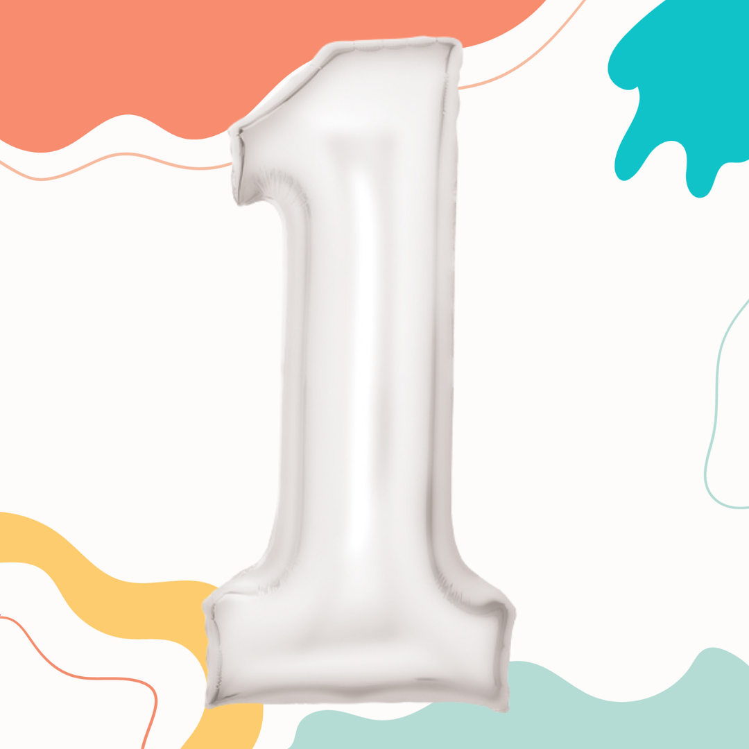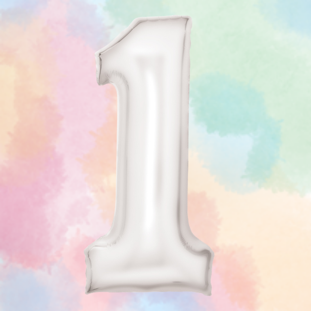 FOIL BALLOON LARGE SILK WHITE ONE 1
