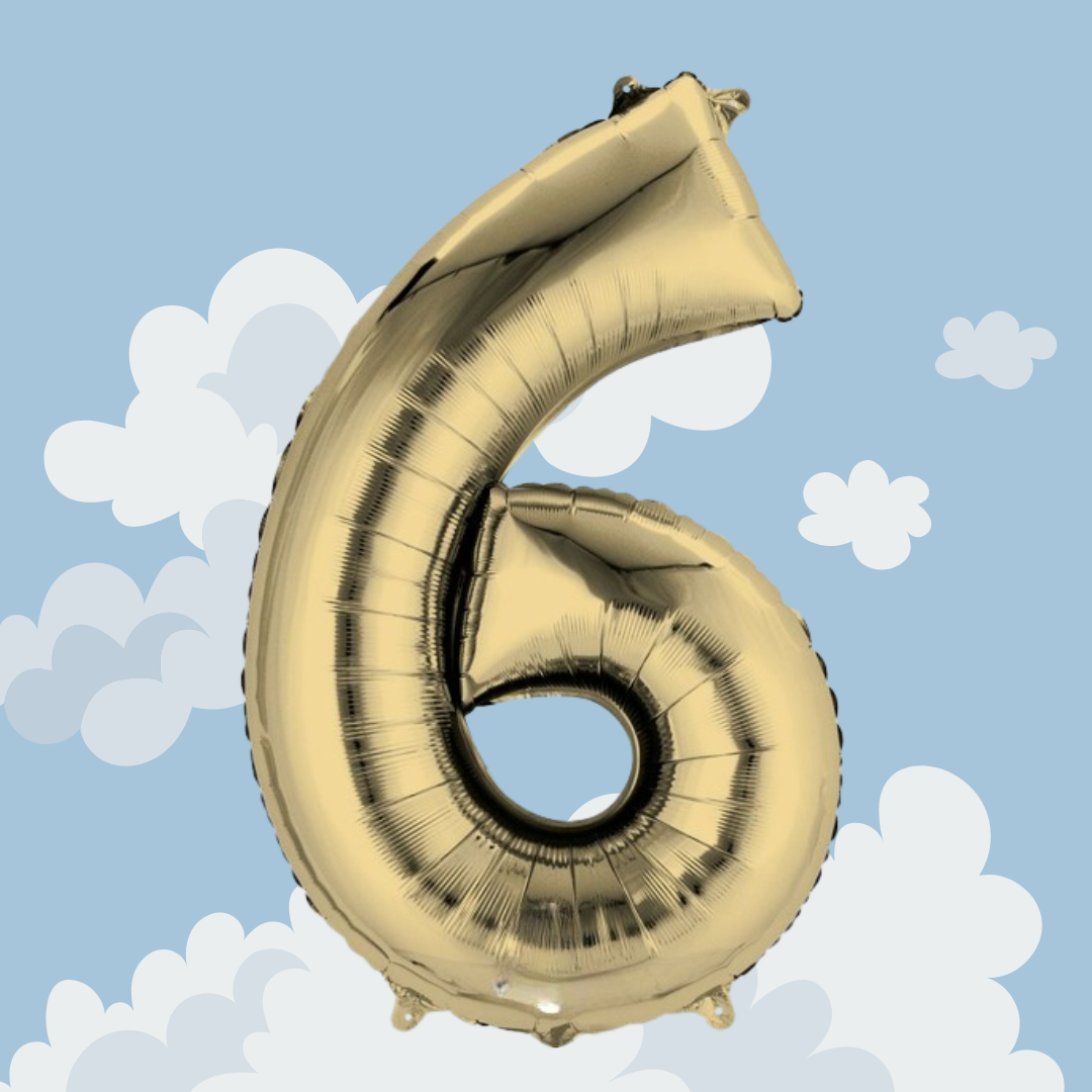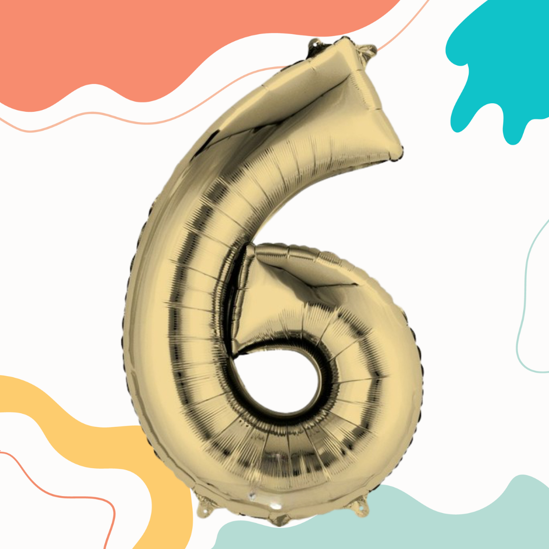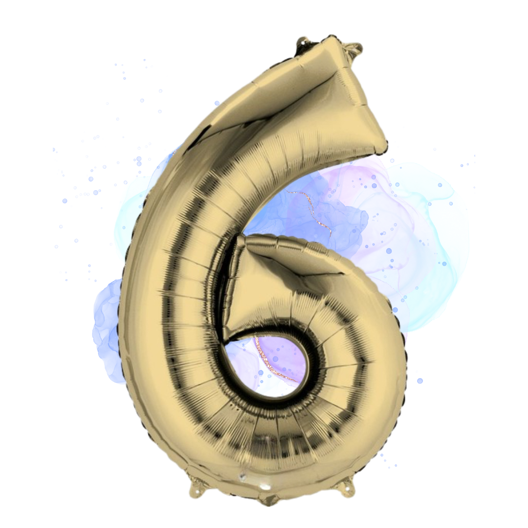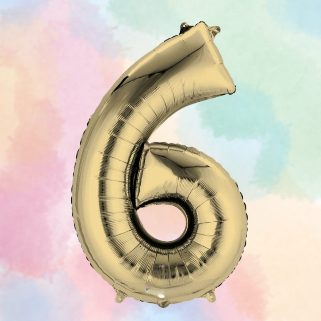FOIL BALLOON LARGE WHITE GOLD SIX 6