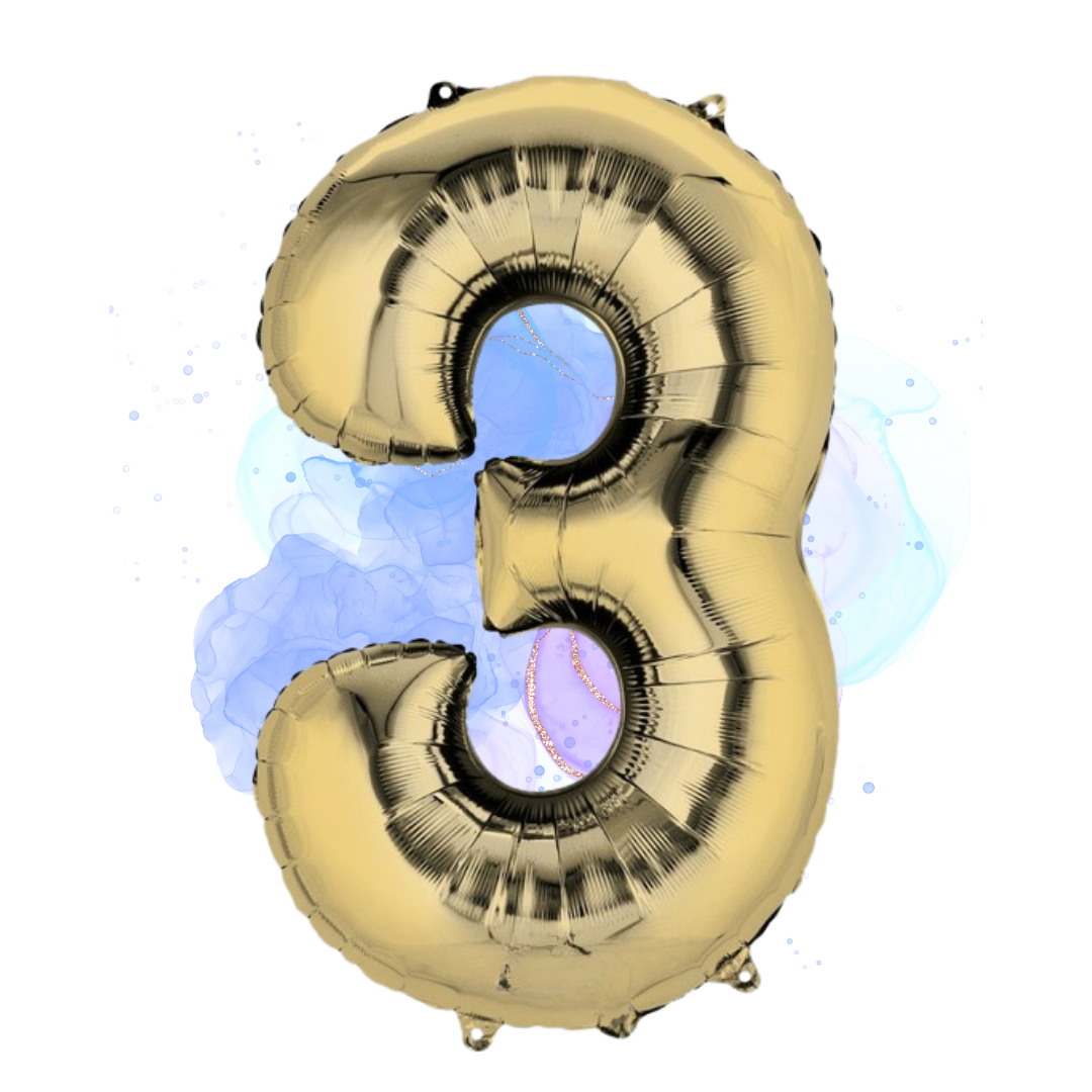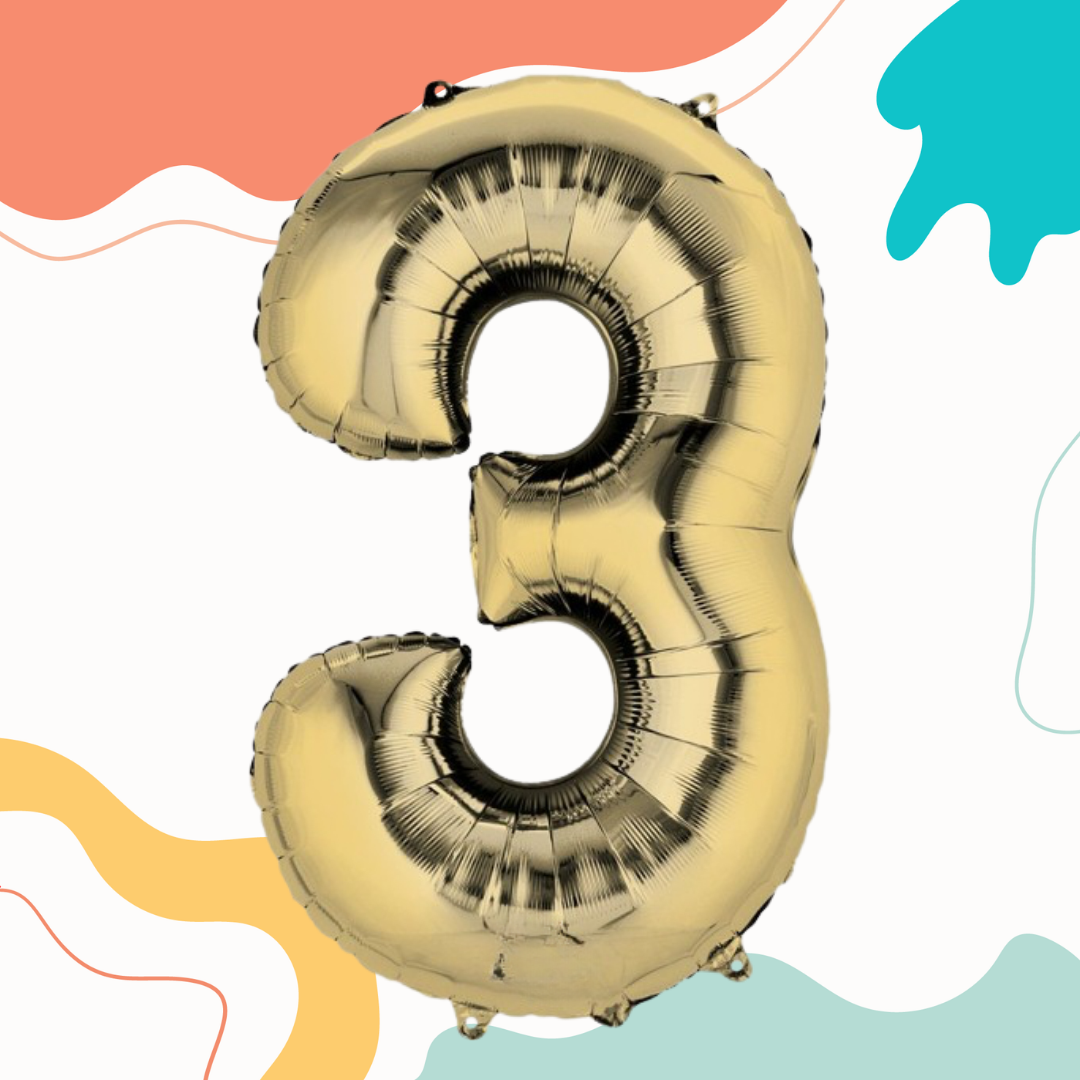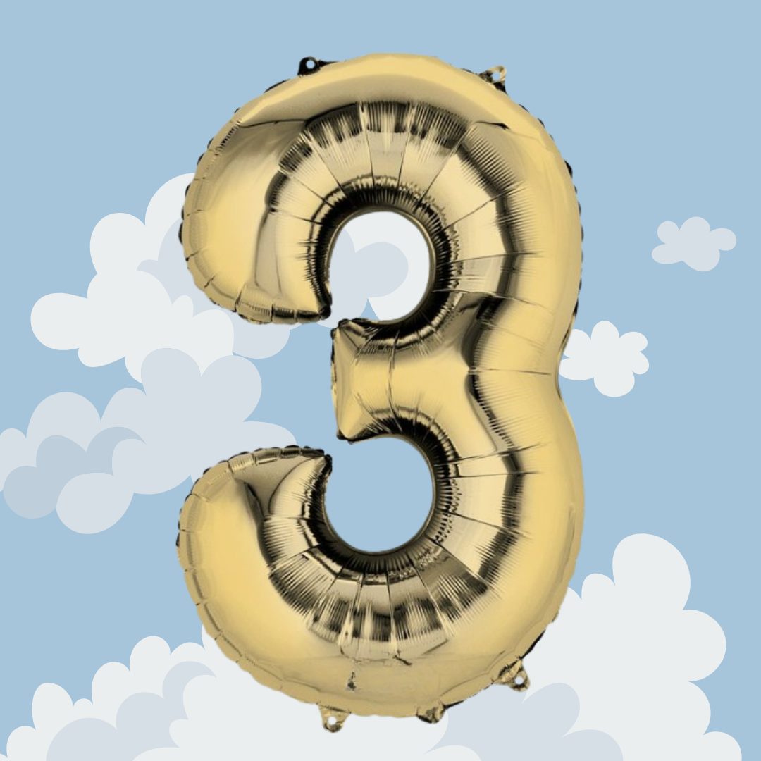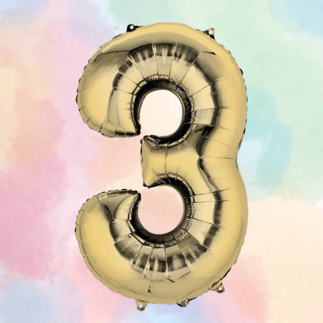 FOIL BALLOON LARGE WHITE GOLD THREE 3