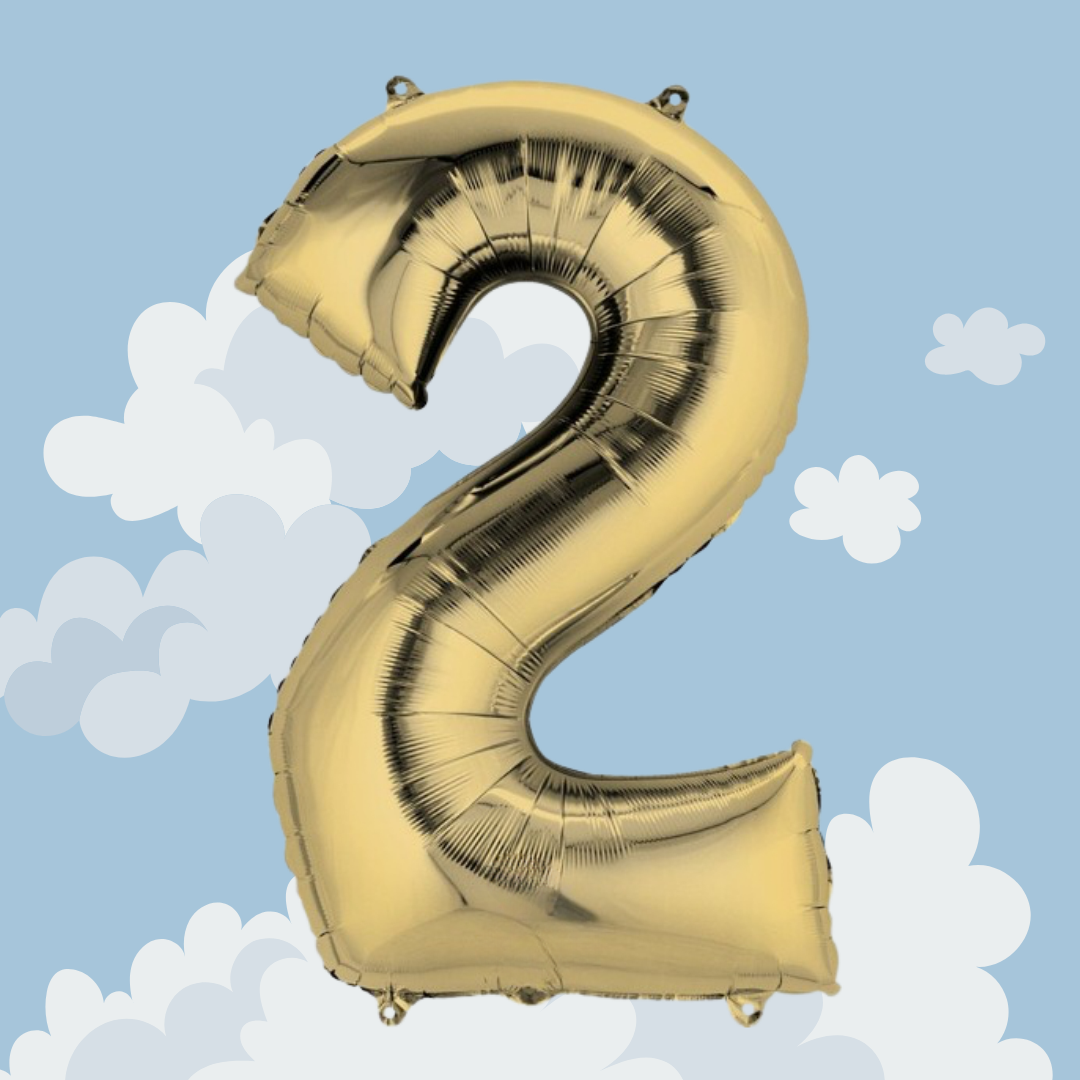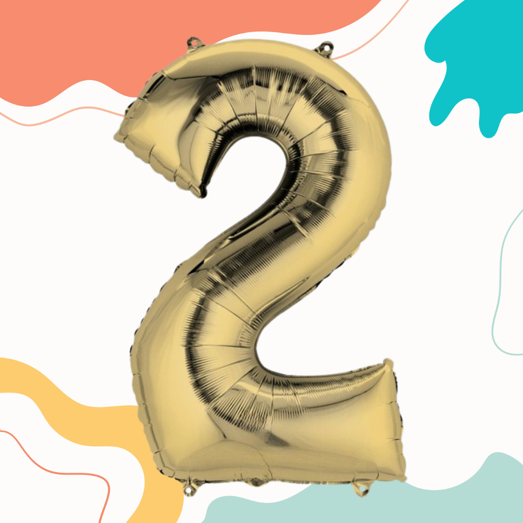 FOIL BALLOON LARGE WHITE GOLD TWO 2