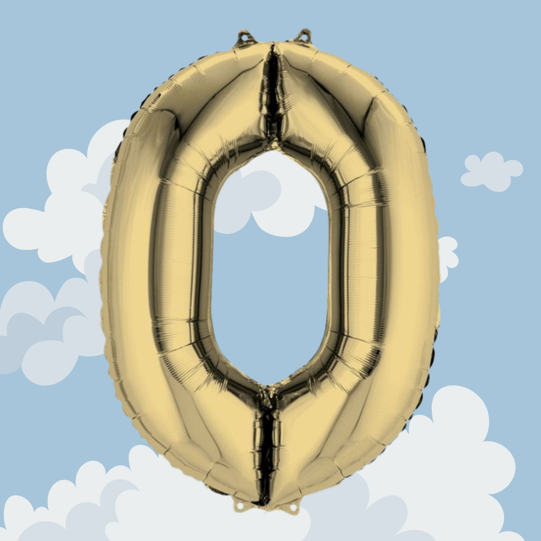 FOIL BALLOON LARGE WHITE GOLD ZERO 0