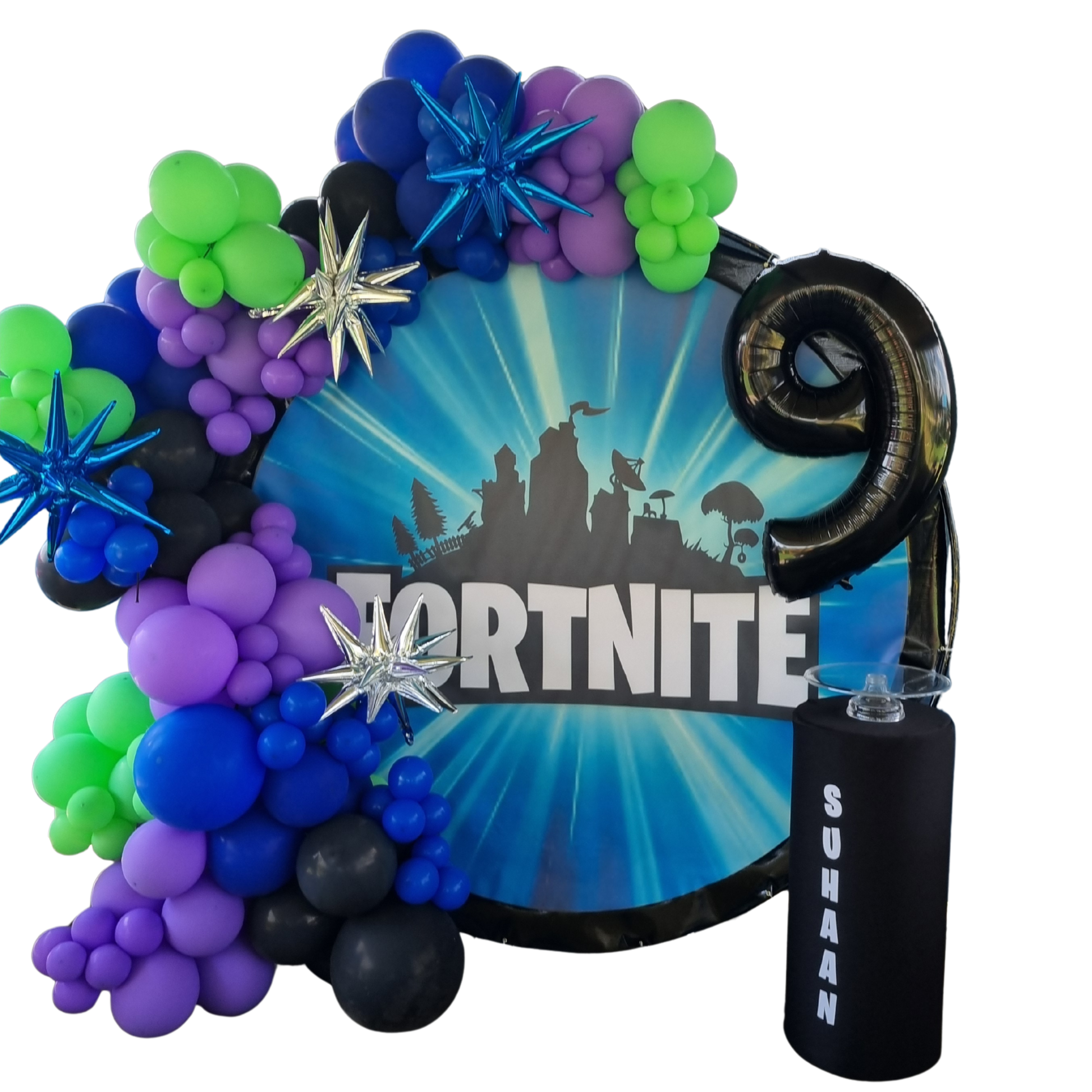 FORTNITE PARTY DECOR Round Backdrop Balloon Garland and Plinth