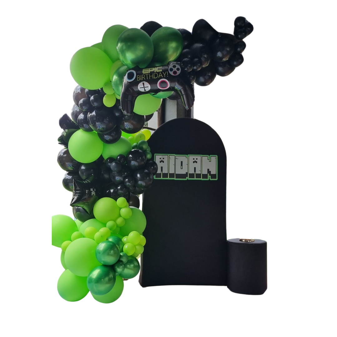GAMER Playstation Xbox Chiara Backdrop with Organic Balloon Garland and Plinth