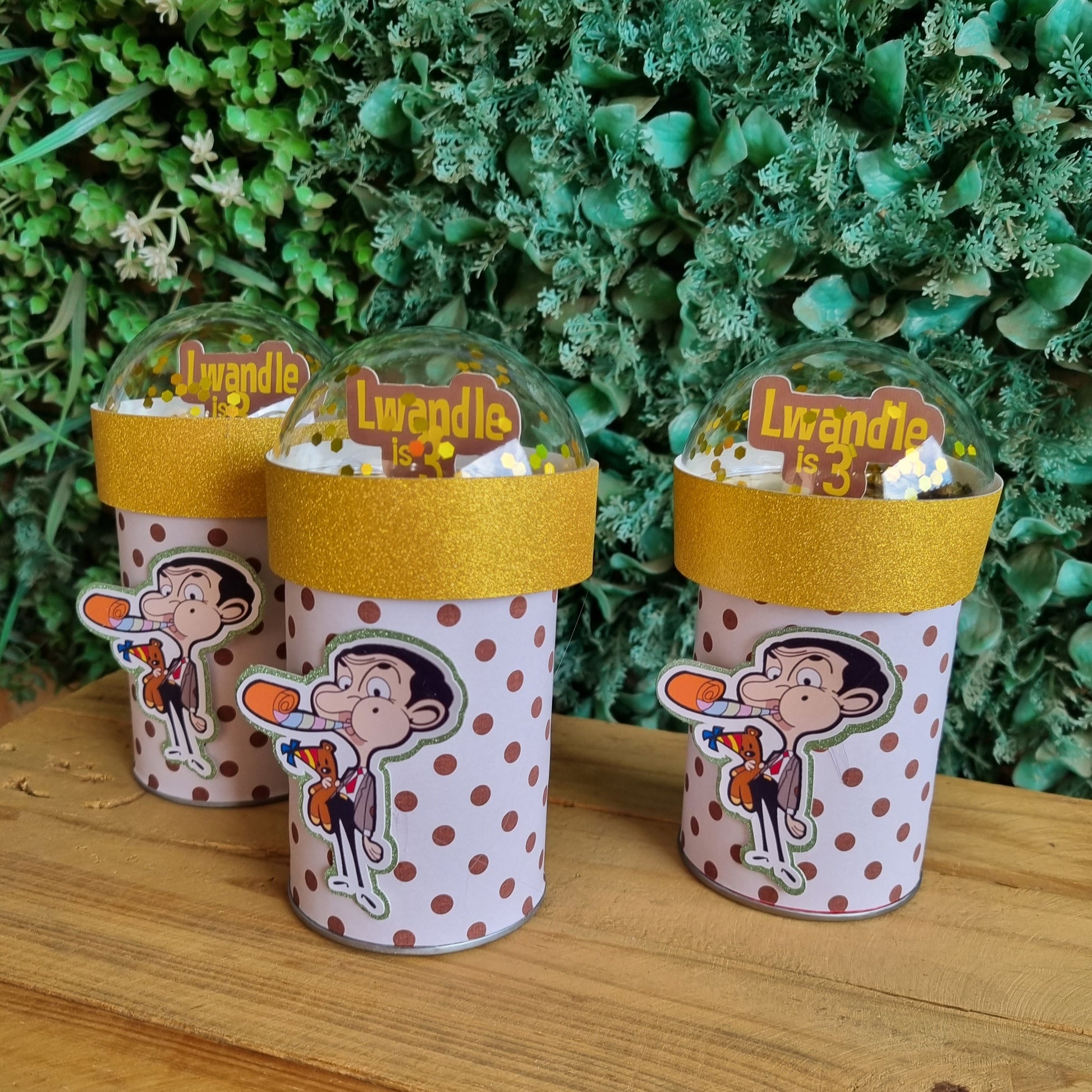 Adorned with a glitter dome topper and high-quality cardstock featuring Mr Bean-inspired artwork
