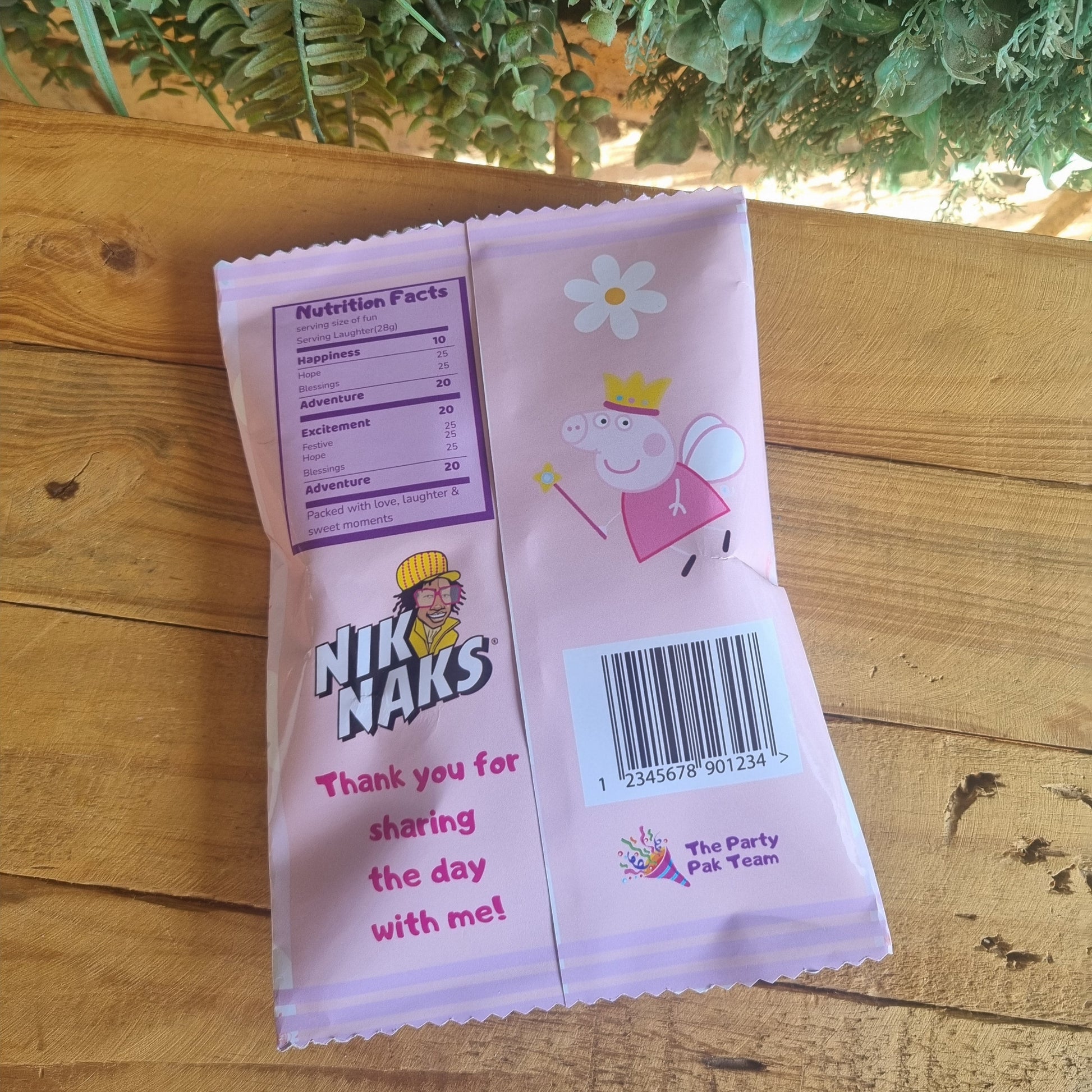 Our Peppa Pig Princess Chip Bag Party Pack is perfect for themed birthdays and celebrations. Pre-designed, printed, and shipped – these chip bags are ready to fill with chips, sweets, popcorn, or favours. Featuring Peppa Pig in her royal gown, they add a magical touch to any girls’ party table.
