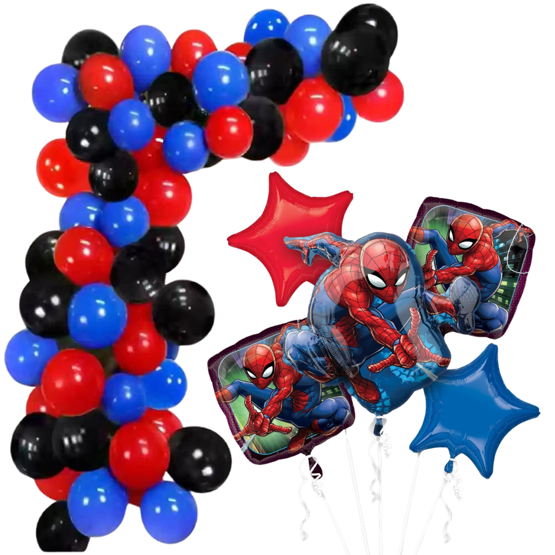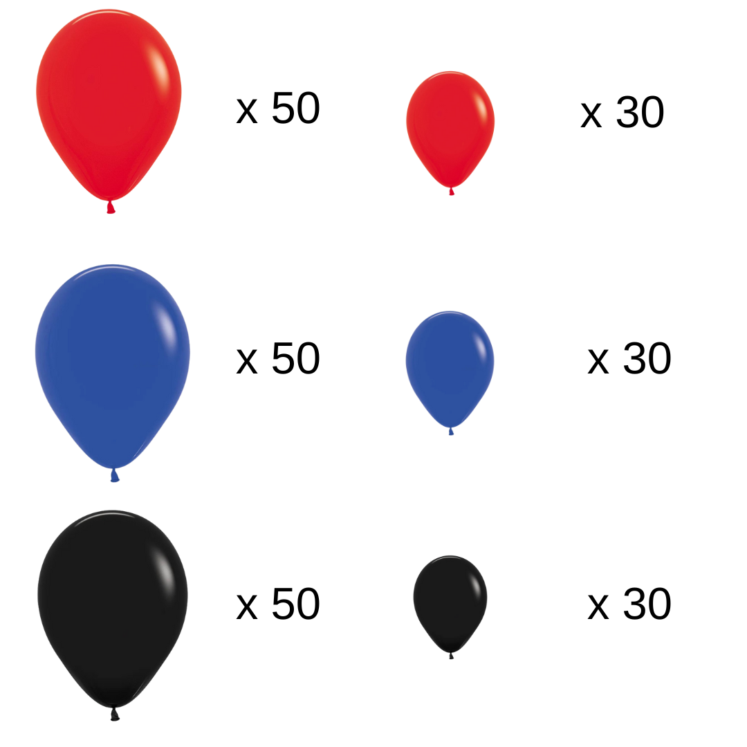 - 240 latex balloons in Spiderman-themed colors (red, blue, black)