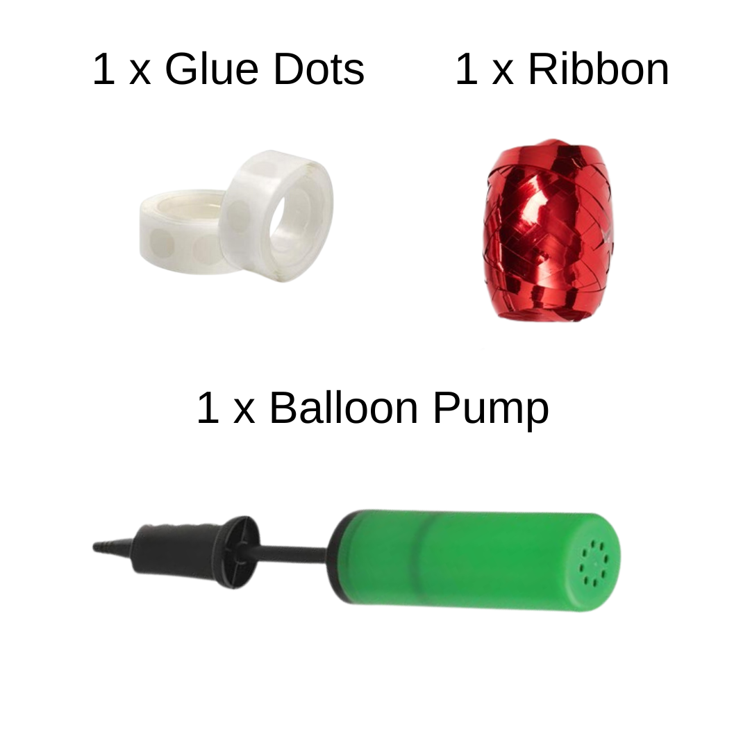 - Balloon pump, ribbon and glue dots for easy assembly
