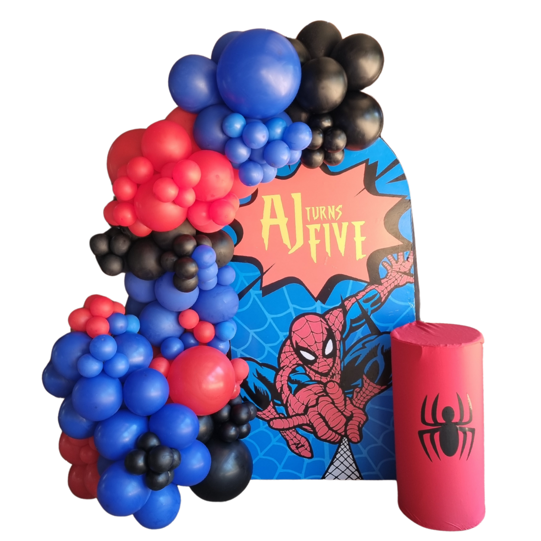 Bring the excitement of Spiderman to your event with our Spiderman Full Print Chiara Backdrop, complemented by a striking Organic Balloon Garland and matching Plinths. Perfect for birthday parties, superhero-themed events, and photoshoots.